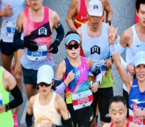 跟着三万大军出发,佟美仪以420左右开跑,一路接近半程时,耳机提示她低电量。那时,她的心态有些崩。随即开始关了耳机随缘跑。放飞自我但却找到了另一种感觉。到30公里时,佟美仪看到赛道外给她加油的爸妈,兴奋让她把配速加到405。用她的话形容,自己跑容易忽快忽慢,快了赶快压,慢了又乱提速。直到最后3公里时,体感有些痛苦,但她算时间发现能破三,于是在濒临抽筋的状态下,还是咬牙加速,完成了破三。