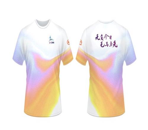 参赛服装设计采用炫彩粉渐变色,既跃动着马拉松的活力与激情,也呼应着江门清新、开放、多元的城市气质。正面饰以赛事专属LOGO,背面“无负今日 邑马当先”的主题口号跃然其上,这不止是一句标语,更是奔跑者的共同誓言。口号的力量与脚步的节奏同频共振,每一位跑友身披这份色彩与宣言,向世界展示一个青春昂扬、奋进不息的江门。