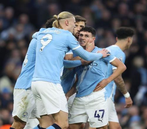第9分钟,谢尔基右路突破传中,哈兰德飞身头槌攻门稍稍打偏。4分钟之后,福登再次通过角球制造威胁,格瓦迪奥尔头槌打高。